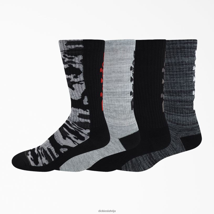 Dickies Latvija | Dickies logotipa camo apkalpes zeķes 4-pack piederumi unisekss L48662921 Melni pelēks marled (BGM)