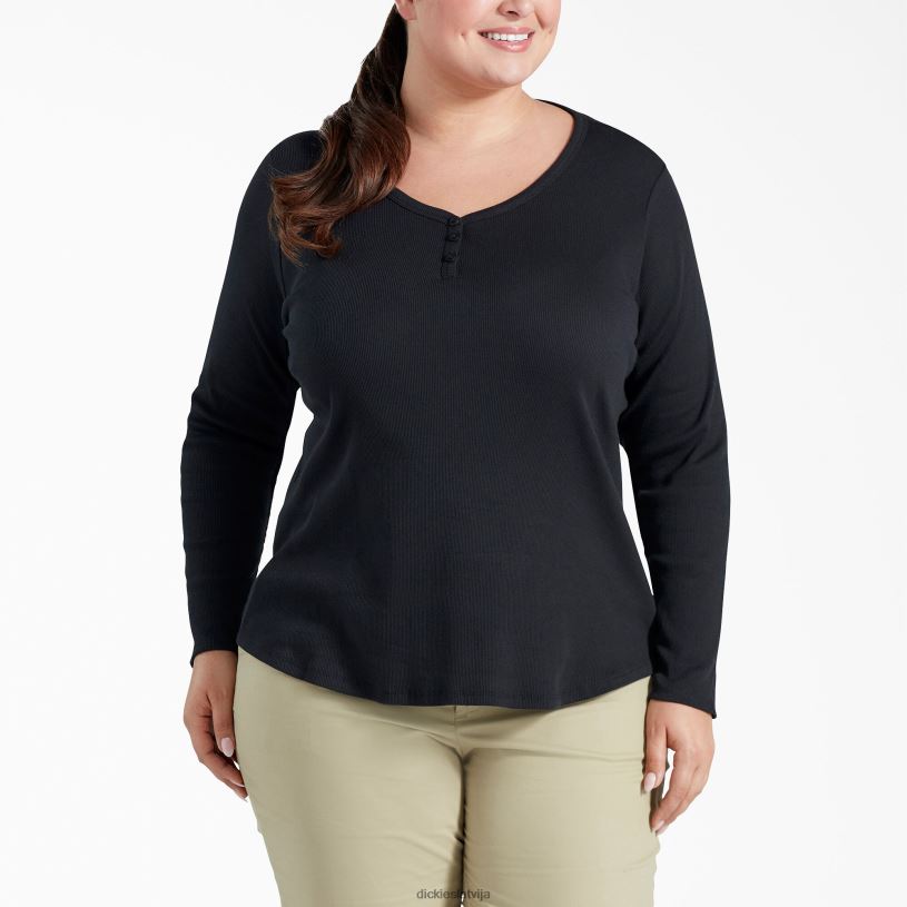 Dickies Riga | Dickies Plus Henley garu piedurkņu krekls apģērbs sievietes L48662204 melns (KBK)