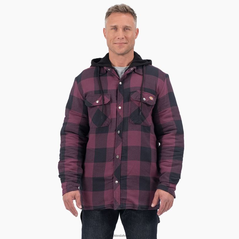 Dickies Riga | Dickies Relaksēta fit ikona ar kapuci stepēta flaneļa krekla jaka apģērbs vīrieši L48661006 vīnogu vīna bifeļa pleds (GPN)