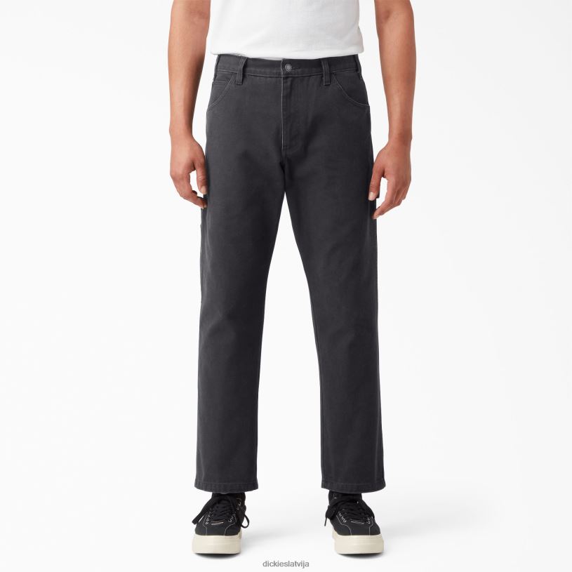 Dickies Latvija | Dickies Regulāras fit akmens mazgātās pīles galdnieka bikses apģērbs vīrieši L4866251 Melns ar akmens mazgāšanu (SBK)