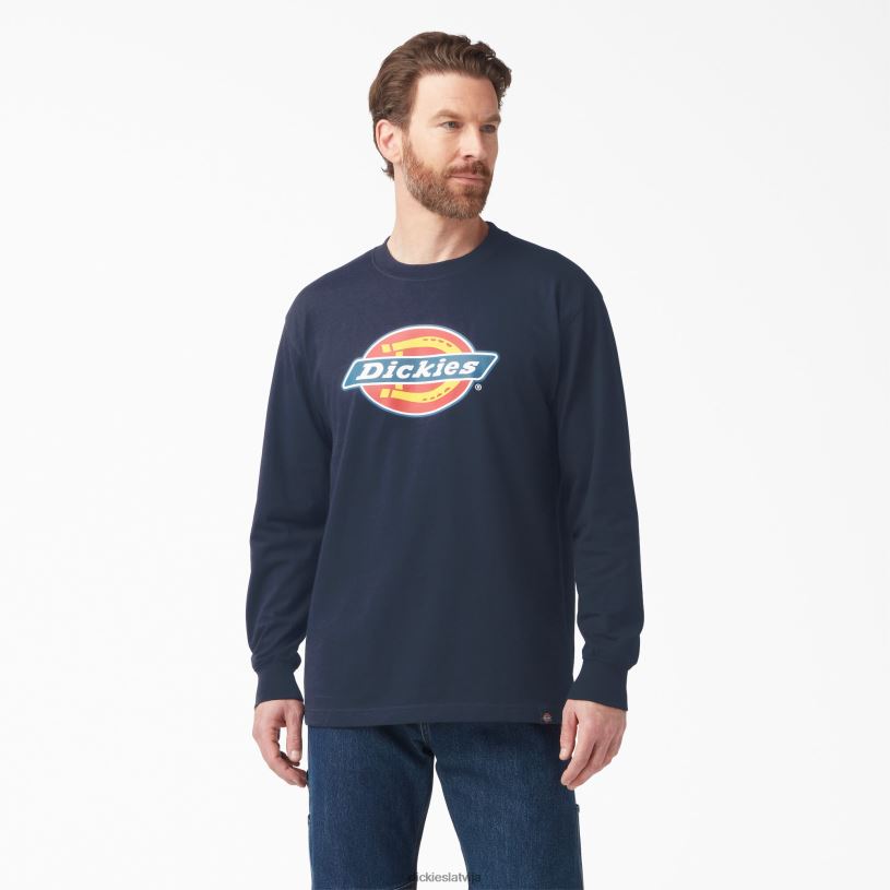 Dickies Latvija | Dickies trīskrāsu logotipa grafiskais t-krekls ar garām piedurknēm apģērbs vīrieši L4866827 Tumšā flote (DN)