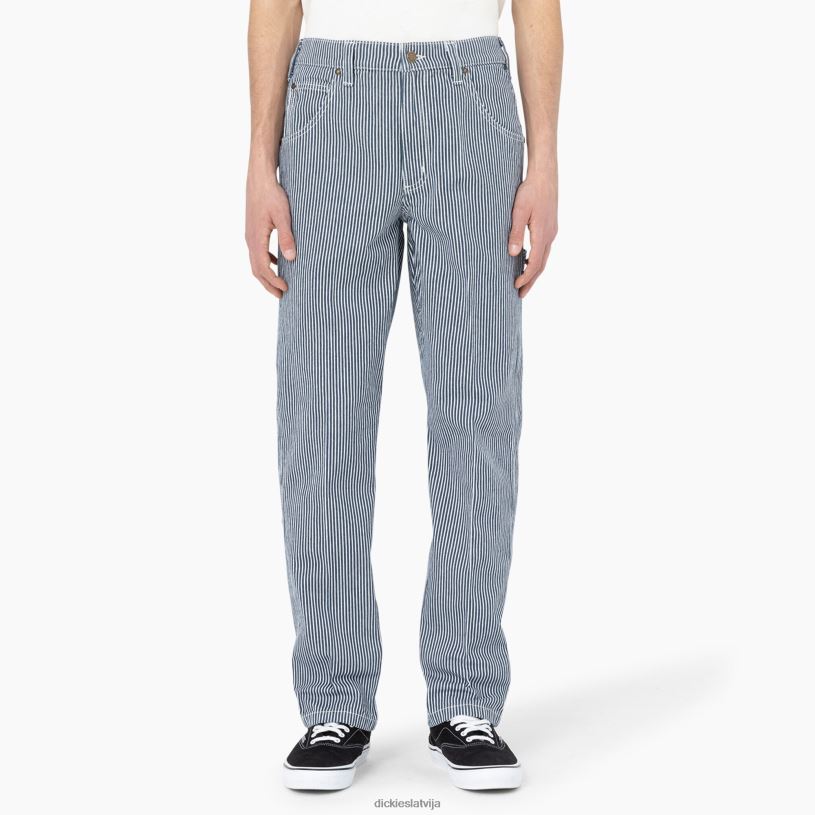 Dickies Riga | Dickies Garyville Hickory Stripe Carpenter bikses apģērbs vīrieši L4866156 Ecru/Airforce Blue (EUA)