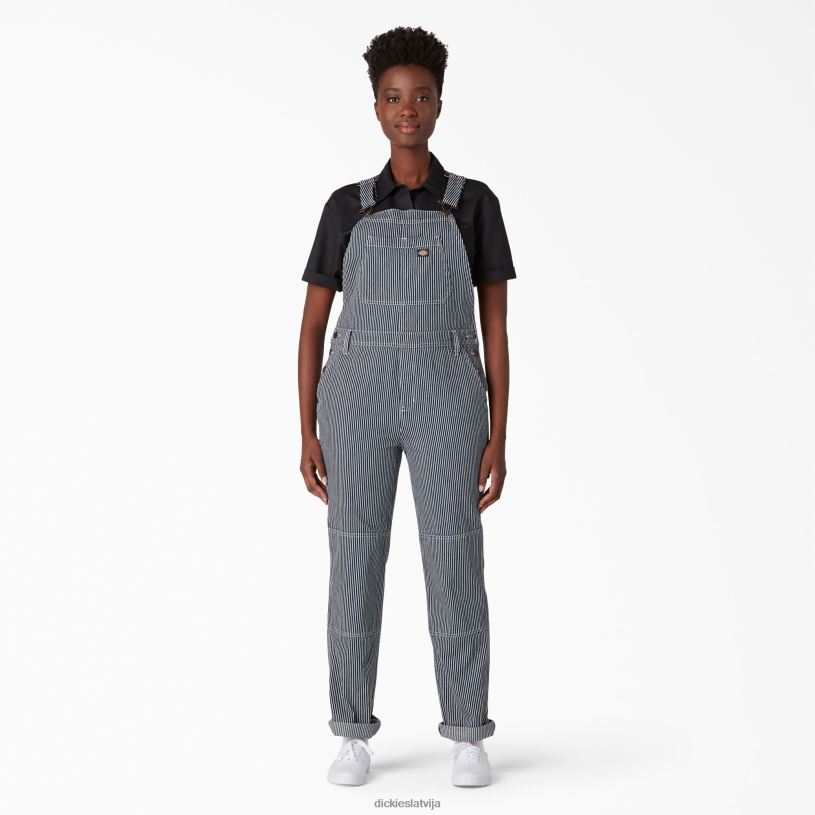 Dickies Riga | Dickies Hickory Stripe dubultā ceļgala bib kombinezons apģērbs sievietes L48661946 Izskalota Hikorija Stripe (RHS)